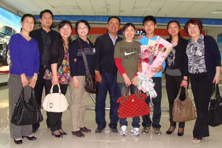 我中心宛主任攜中心工作人員和李道霞一家一起在機(jī)場(chǎng)大廳合照。 |