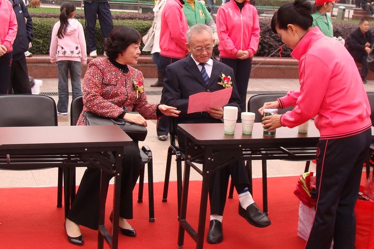 省人大副主任張俊和省婦聯(lián)主席黃紅在貴賓席上親切交談。