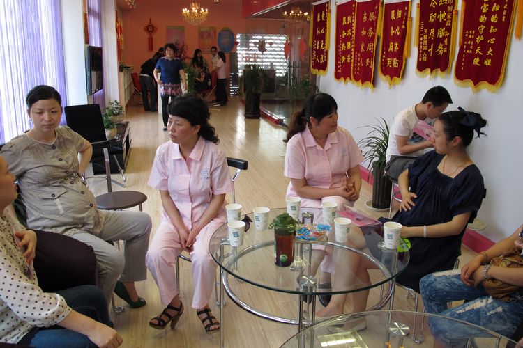 月子護(hù)理師李世芬和朱占洪與準(zhǔn)媽媽們親切交流。