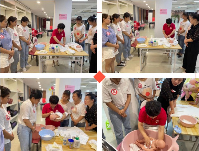 培訓(xùn)課上,皖嫂家政培訓(xùn)部盧老師帶來(lái)了很多的育嬰課程培訓(xùn)的道具,如嬰兒模型、尿不濕、奶瓶等,盧老師手把手的教授大家育嬰知識(shí):“小孩子的脊椎比較軟,給寶寶擦頭發(fā)的時(shí)候,一定要注意抱的姿勢(shì),胳膊要像這樣托著頭部”。大家都紛紛表示,盧老師說(shuō)的很好,既生動(dòng),有形象,還很實(shí)用,真的是受益匪淺呀~