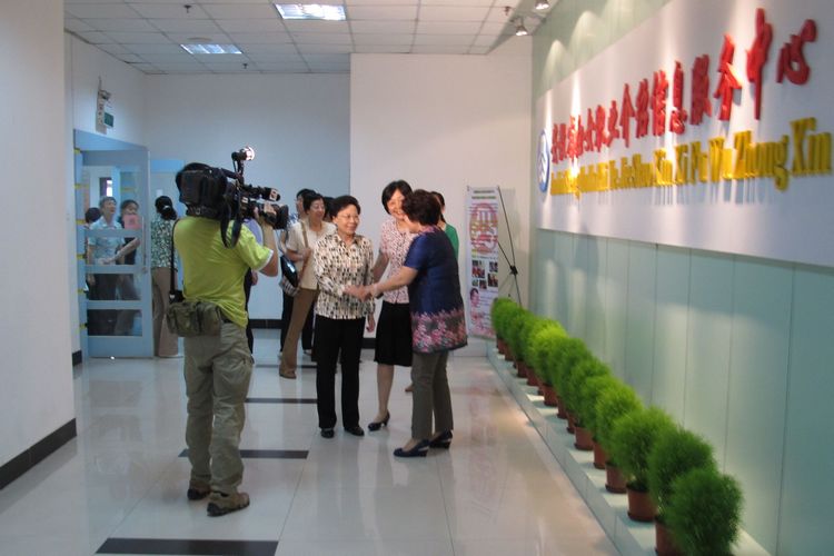 黃晴宜同志首先來到大廳,與中心宛主任握手交談。