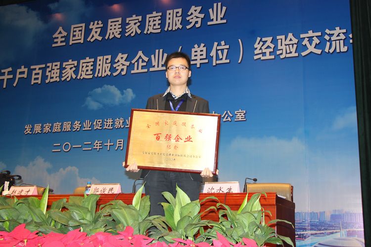 我中心榮獲全國發(fā)展家庭服務(wù)業(yè)百強企業(yè)稱號