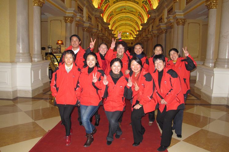 中心全體工作人員在碧桂園鳳凰國際酒店大廳內(nèi)合影。