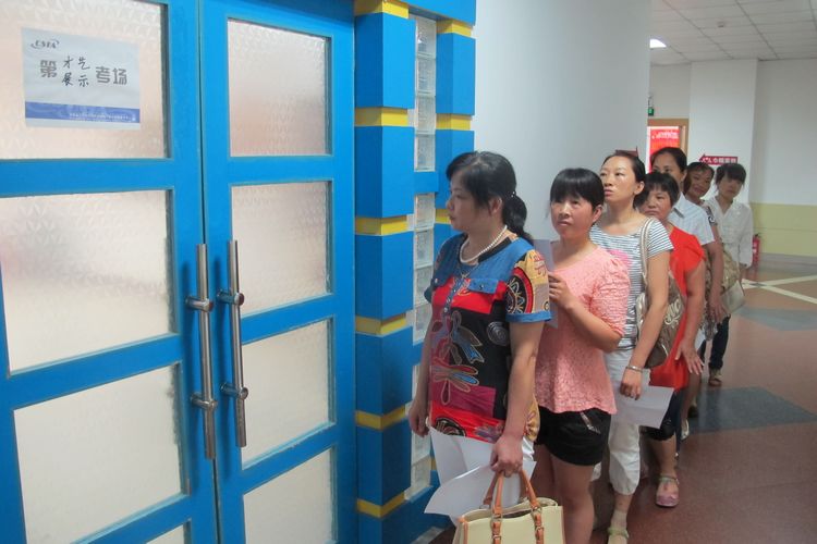 第29期初級育嬰師班學員排隊等候參加技能考試