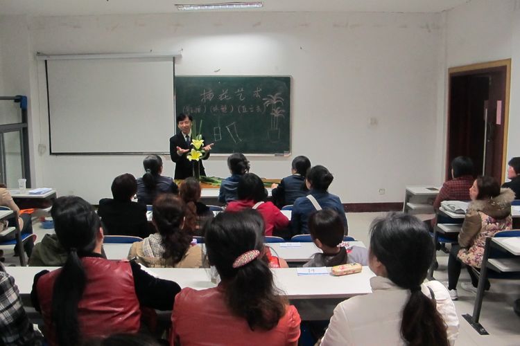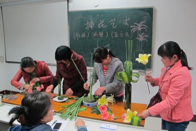 花藝師在和學生講解家庭插花