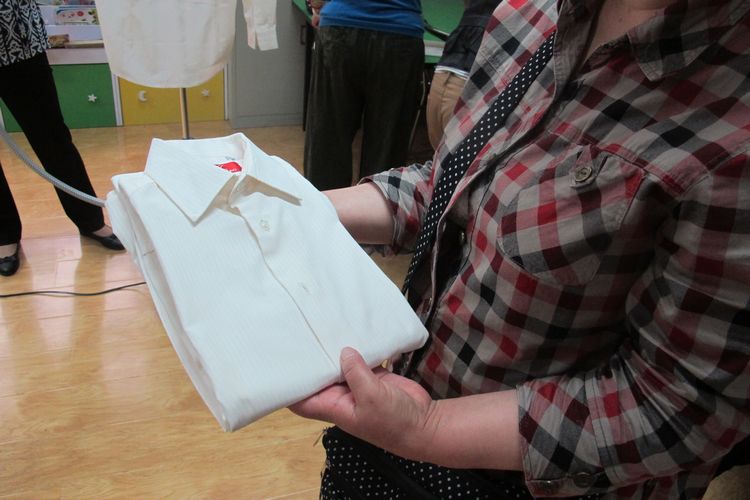 學(xué)員在向監(jiān)考老師展示熨燙好的衣物 |