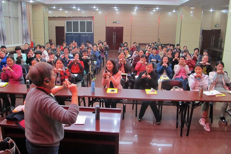 知名早教專家李佩芬老師在和本期培訓(xùn)的學(xué)員上課實(shí)景(一)