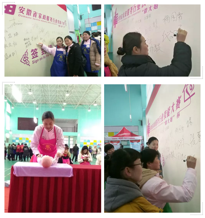 安徽省大海家政保潔服務(wù)有限公司、安徽娘子軍家政服務(wù)有限公司、合肥齊芳母嬰護(hù)理有限公司、安徽徽大姐家政服務(wù)有限公司以及安徽省皖嫂家政服務(wù)有限責(zé)任公司、蕪湖皖星月嫂家政服務(wù)有限公司、六安惠民家政服務(wù)有限公司等來自全省20多家家政公司,200多名家政服務(wù)人員參加此次大賽。
